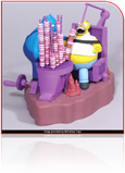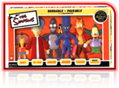 Vous pouvez voir ci-dessus, l'image du " Train de la Terreur " ; c'est en effet le nom de l’assortiment de nouvelles figurines Spécial Halloween. Il comporte dans le premier wagon : King Kong Homer qui tient dans sa main Marge (Horror Show III) ainsi que le Gremelin à l'avant (Horror Show V); dans le second se trouve Patty , Selma et Marge en sorcière (Horror Show VIII; dans le 3ème on retrouve Bart en Elastique-Man et Lisa en Tabasse Girl ainsi que leurs ennemi le Vendeur de BD alias le collectionneur (Horror Show IX); Enfin dans le dernier wagon se trouve Mr. Burns en Maître des Vampires , ainsi que Smithers et Grand-père version Vampire (Horror Show IV). |