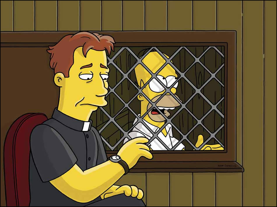 après avoir rencontré le père Sean qui lui ouvre les yeux sur la religion catholique. Homer finit lui aussi par se convertir sur les conseils du père, mais Marge refuse catégoriquement de changer de religion...
