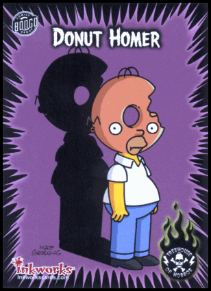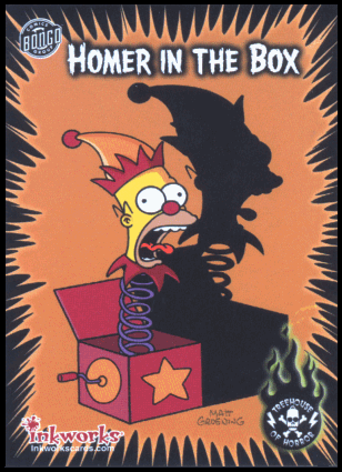 En mars 2003, Panini sort en France une nouvelle collection de cartes à collectionner Simpson, les cartes "Simpsons Mania" sortis aux États-Unis par Inkwors. Cette collection comporte 90 cartes et possède la particularité de posséder une catégorie nommée "la petite maison des horreurs" de 9 cartes. Cette catégorie comporte des fiches sur plusieurs personnages des épisodes Spécial Halloween. |